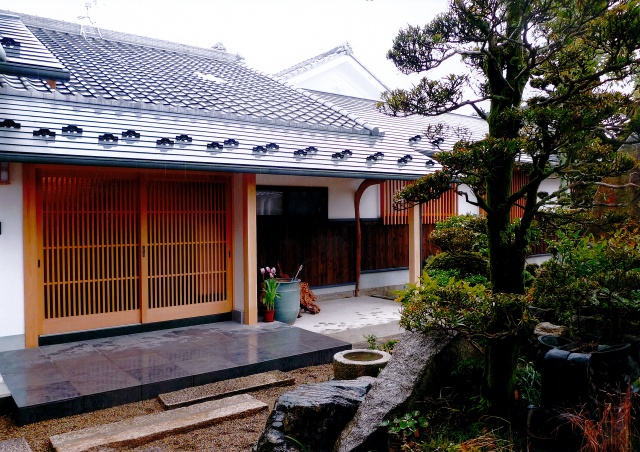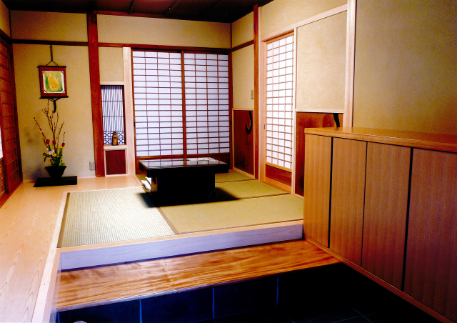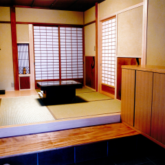 築80年のお寺の庫裡の改修。増築を重ねてきた木造部分の耐震性に大きな問題があったので、限界耐力設計により、耐震フレームと耐震リングを設置し、従来の続き間をそのまま生かしながら大地震で倒壊しないレベルに耐震改修を行った。