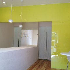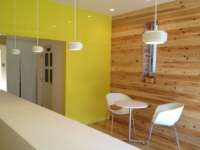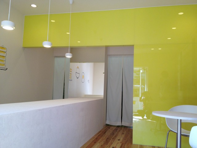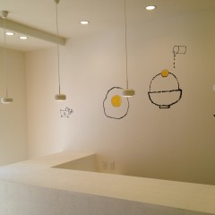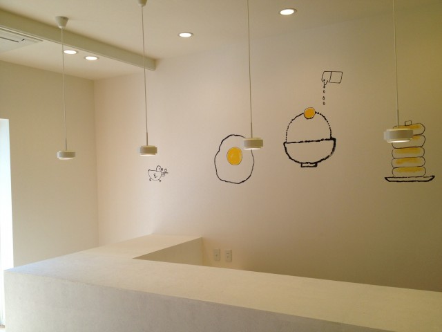 産直のたまご専門店。カウンターバックのデザインは、卵料理をテーマにイラストレーターに描いて頂いた。