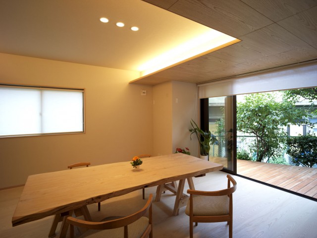 窓は単板ガラスをLow-e複層ガラスに、断熱と遮熱に使い分け、暗かった以前の家は、部屋を分けていた壁が取り払われることで、部屋のどこからでも庭の緑と風を感じられる。