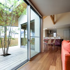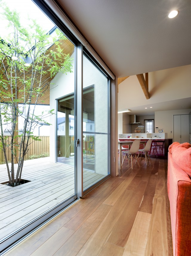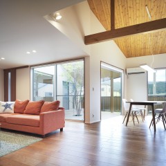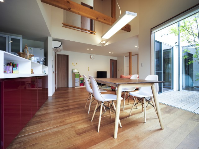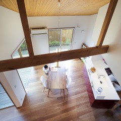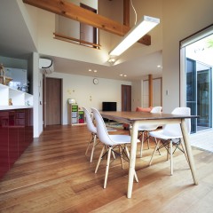 住まい(新築)の実例大屋根に包まれて 夫婦+子供3人木造2階建延床面積:176.6㎡(53.4坪)所在地:和歌山県 大きな屋根は内部と外部のウッドデッキを一緒に包む。バイク置き場やリビング納戸、真っ赤なキッチンなど、クライアントのアイデアでいっぱいのオンリーワンの住宅。 一覧へ戻る